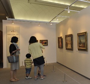 当日は、幼稚園児をターゲットにする媒体ならではの取り組みで、子どもたちのはじめてのアート体験を応援。参加する子どもは入場時に、美術鑑賞のマナーをスタッフと約束し、「やくそくまもれるよ!」シールを胸にはって鑑賞しました。さらに、展示されている絵画を解説する親子鑑賞シートを用意。熱心に絵を見る親子が多く見られました。